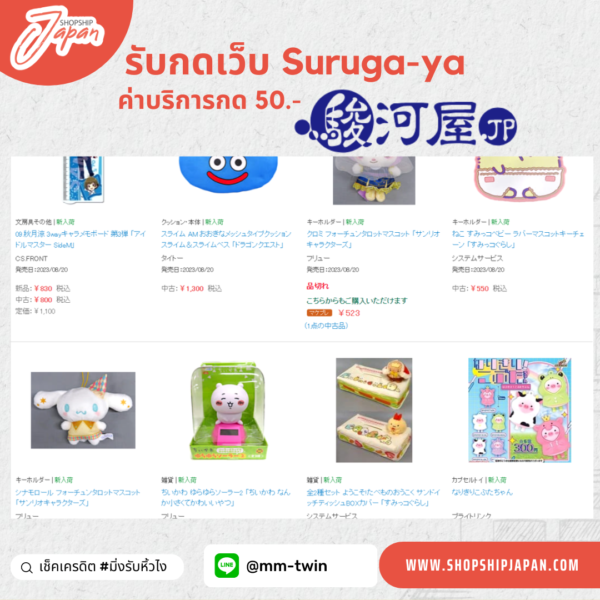 คุณสามารถใช้บริการกดเว็บญี่ปุ่นกับเรา SHOPSHIP JAPAN เจ้าของเดียวกันกับ #มิ่งรับหิ้วไง เพื่อสั่งของจากประเทศญี่ปุ่น เรารับกดเว็บญี่ปุ่นทุกรายการที่คุณสนใจ บริการเป็นกันเอง มีทั้งเรทราคาส่ง หรือจะให้เราช่วยรวมราคาส่งถึงไทยให้เลย จ่ายทีเดียวไม่ต้องจ่ายเพิ่มก็สามารถสอบถามได้ค่ะ ทั้งนี้เราช่วยเลือกซื้อสินค้าจากญี่ปุ่นในราคาที่ลูกค้าคุ้มค่า ขนส่งเริ่มต้นที่ขีดละ 18 บาท สินค้ามีรอบเรือส่งออกจากญี่ปุ่นทุกอาทิตย์ และขนส่งในประเทศไทยได้ทุกขนส่งตามที่ลูกค้าต้องการค่ะ สนใจบริการทักสอบถามมิ่งได้ตลอดที่ line id @mm-twin